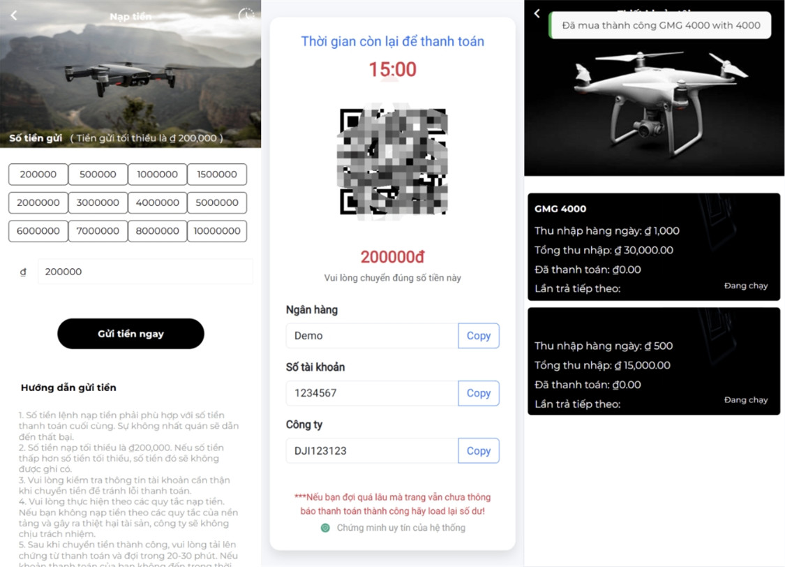 这是一套无人机投融资源码,基于Laravel框架,UI设计不错,后台管理支持用户管理、产品展示、投资方案、资金管理等功能,与投资理财类源码比较,功能上应该是大同小异的,只是面向产品不同而已,前端语言默认是越南语。测试环境:Linux系统CentOS7.6、宝塔面板、Nginx、PHP7.4、MySQL5.7,伪静态选择laravel5,建议开启SSL