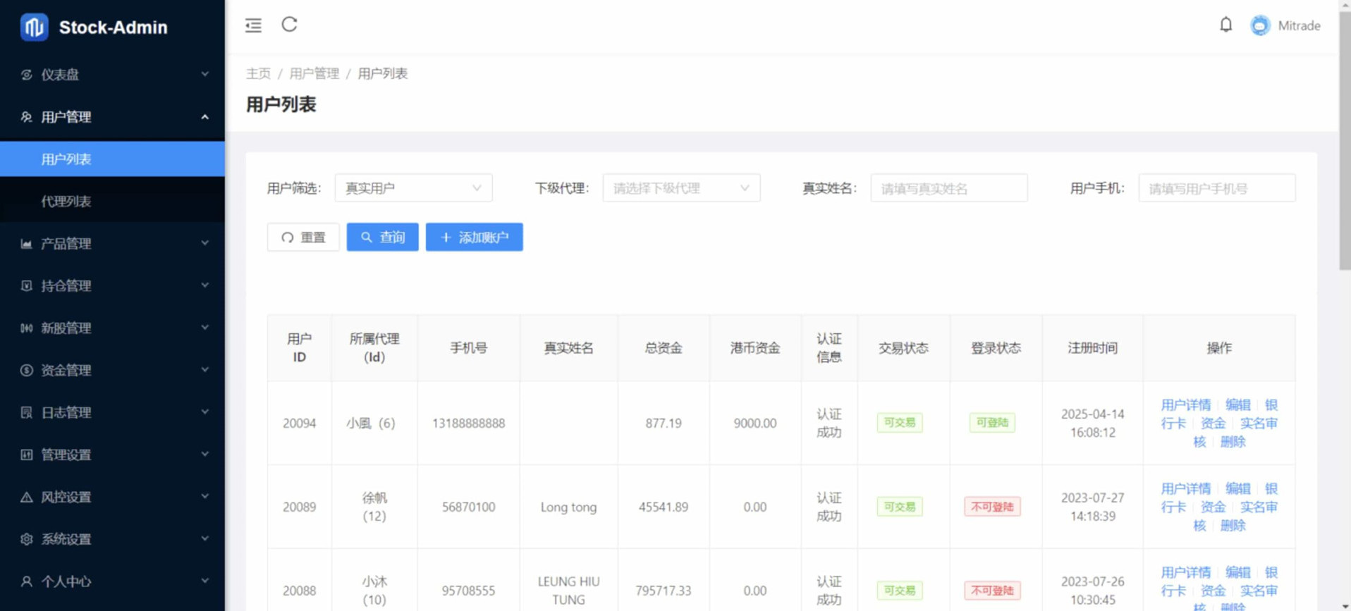 这是一套香港股票交易源码,前端基于Vue.js框架,支持多端适配(手机端+代理端等),后端采用Java技术栈(全开源),支持高并发交易数据处理。源码拥有完整的香港股票交易功能,支持实时交易与资金管理,支持大宗交易,支持新股申购,支持实时行情,支持股票查询等操作。但是,K线图上获取不到准确数据,也没有跳动,报错提示:数组索引越界异常,大概率是API接口变动导致的,懂JAVA的朋友可以自行修复。