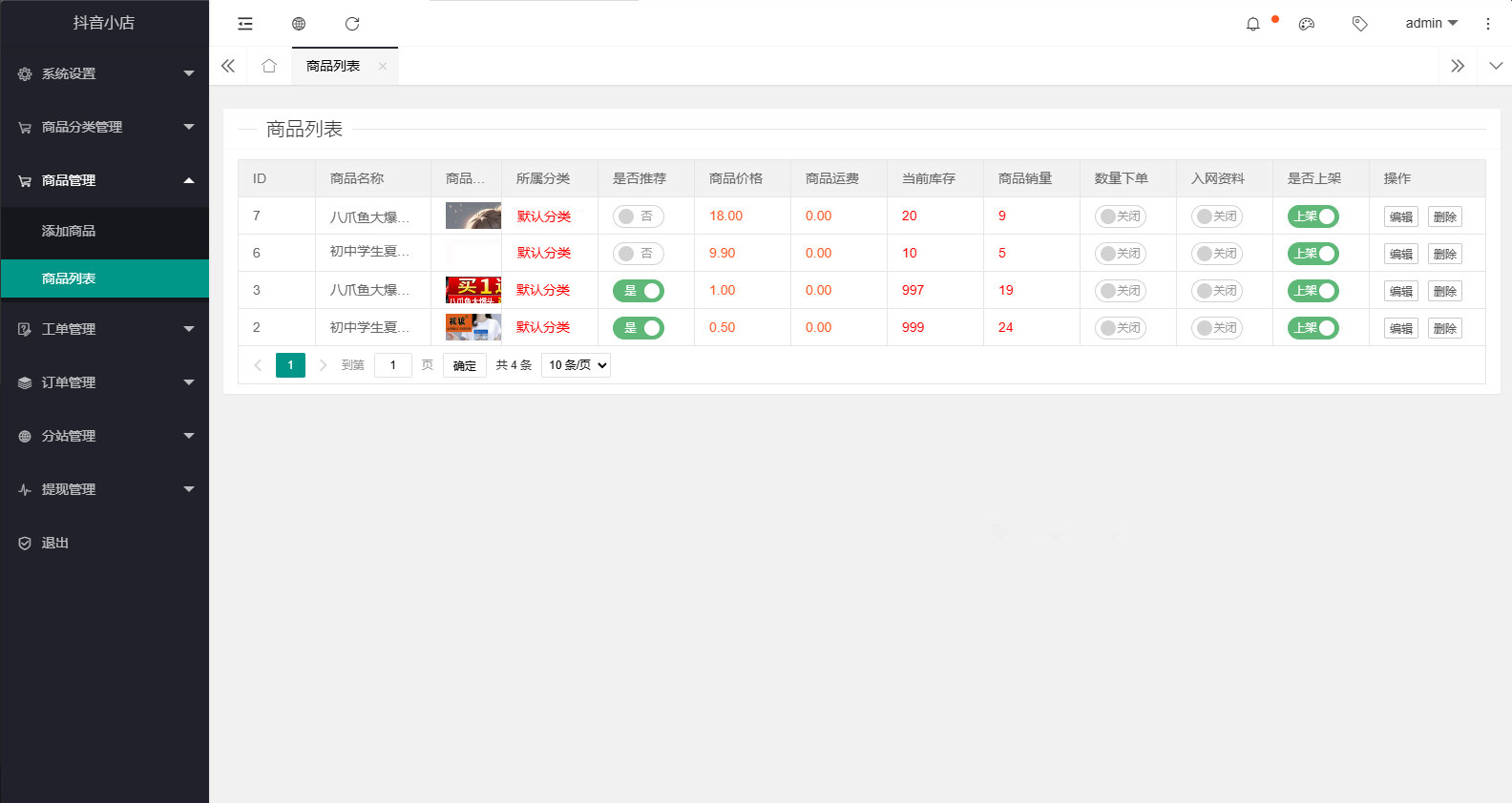 这是一套抖音小店商城系统(完整版),大概率是单商户版,支持在线支付(微信+支付宝),支持第三方短信接口(预置短信模板),后台拥有网站设置、分类管理、商品管理、工单管理、订单管理、分站管理和提现管理等功能菜单。测试环境:Nginx+PHP7.0+MySQL5.6,访问域名直接安装,后台地址:/域名/Mao_admin。源码内有详细的文本介绍(源码功能.txt)
