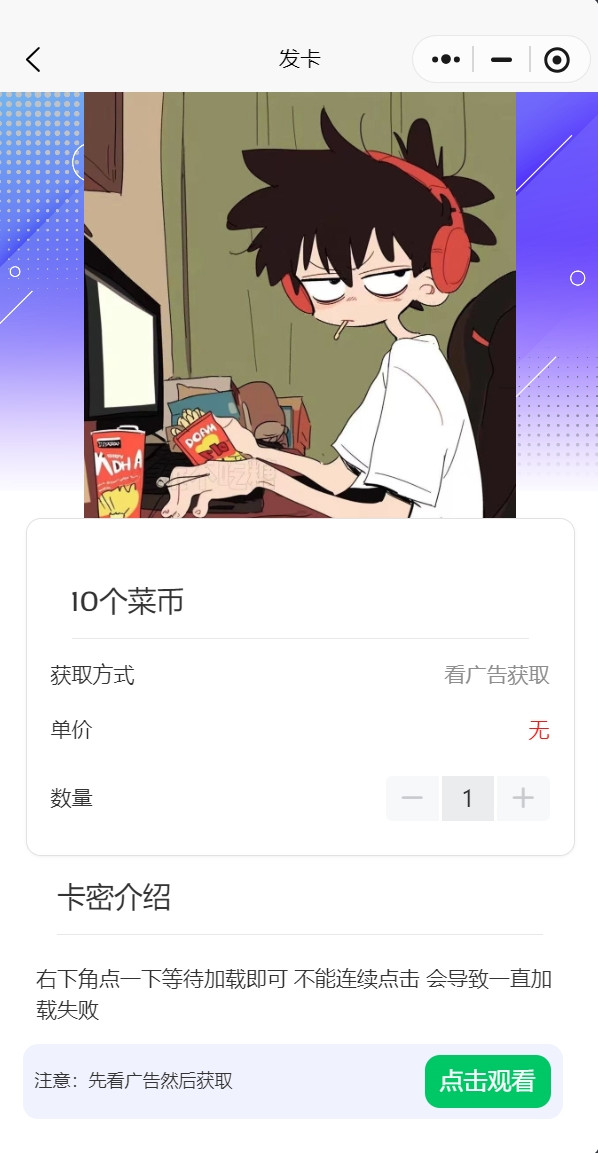 这是一套多功能的发卡小程序(独立版),前端(微信小程序)+PHP后端(直接访问域名安装),支持多种领取方式:直接领取+观看广告领取+付费支付领取等,支持自定义限制下一次领取,支持灵活设置自定义时间限制,支持领取方式个性化配置,内置视频流量主功能,助你赚取广告收益(但远不止于此),支持多功能裂变扩展,支持添加自定义分类,支持卡密管理和导入卡密等。