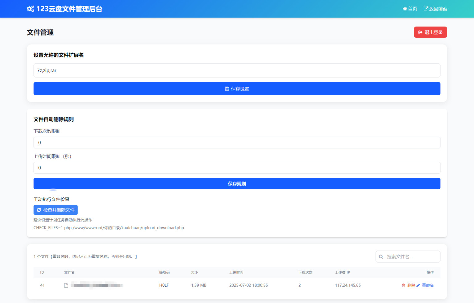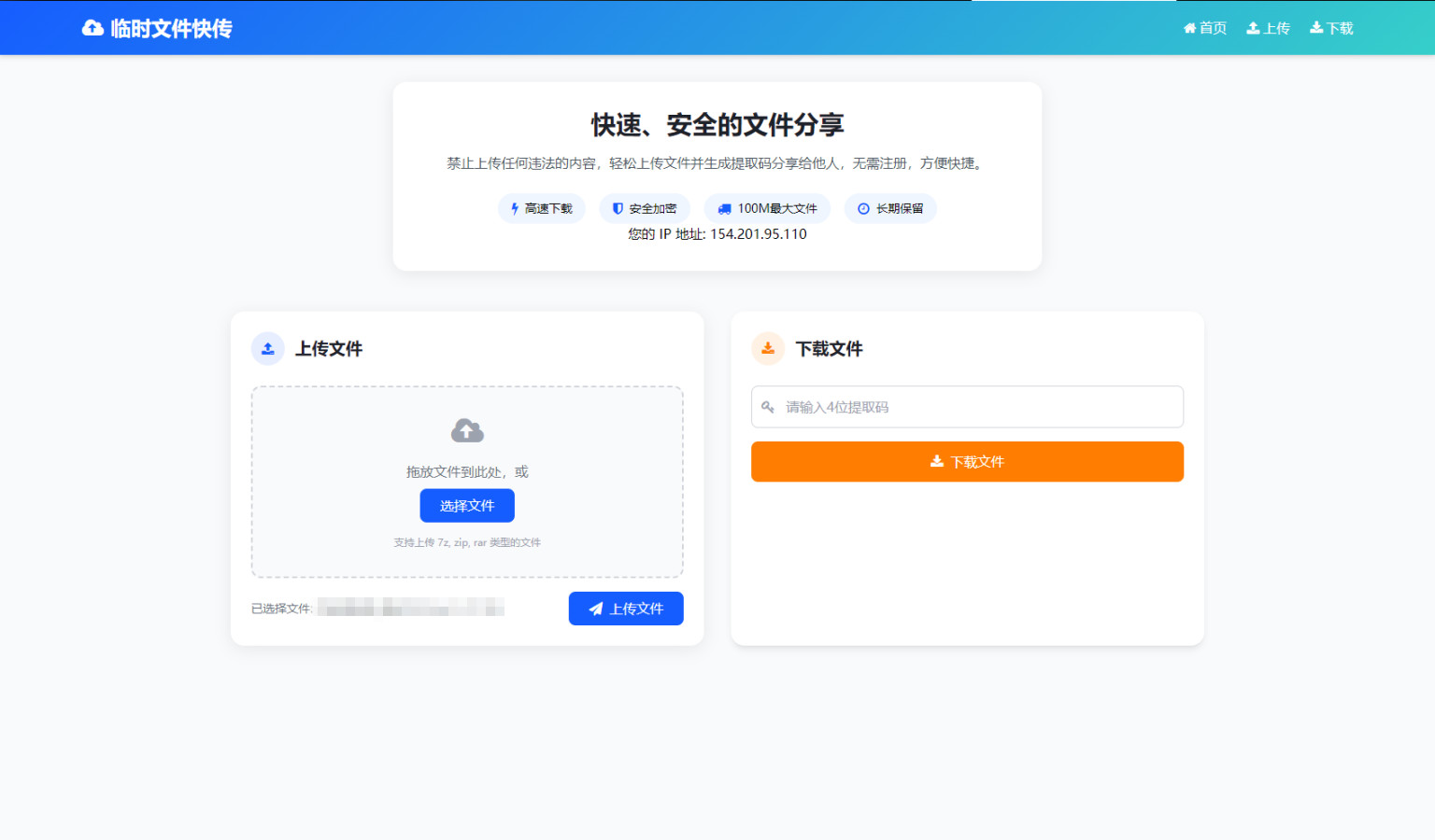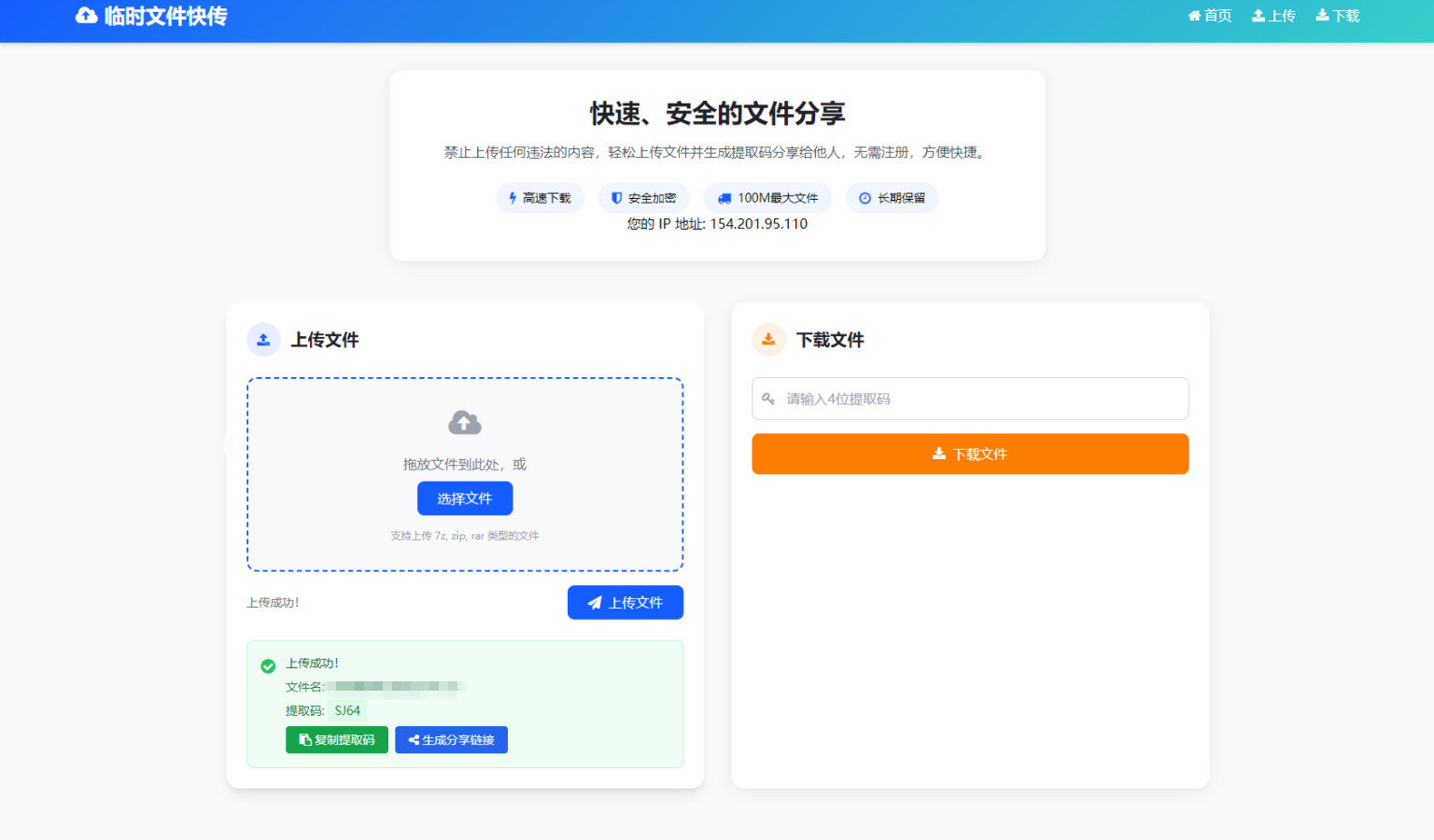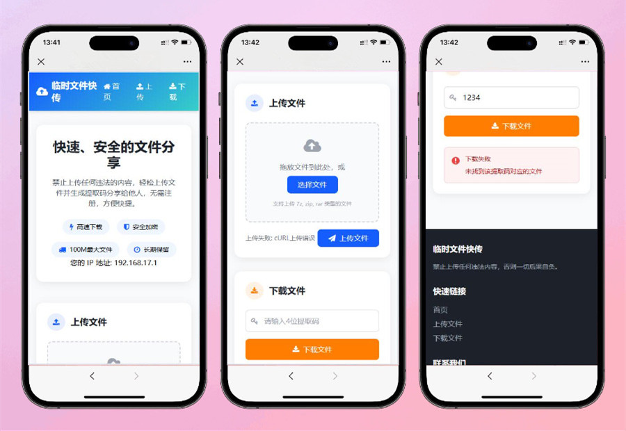 这是一套临时文件快传源码,轻量化带后台,手机端完全自适应,无需注册即可实现文件快速上传与分享,通过提取码机制保障文件安全,适合临时文件传输场景使用,基本原理则是通过OpenList实现与123云盘的存储直连,因此可以利用OpenList上传到123云盘上,需预先安装OpenList(Alist的替代方案)。测试环境:PHP7.4+,安装OpenList服务并完成123云盘对接,后台地址/admin.html,源码内自带OpenList压缩包(0.98M+660个文件)