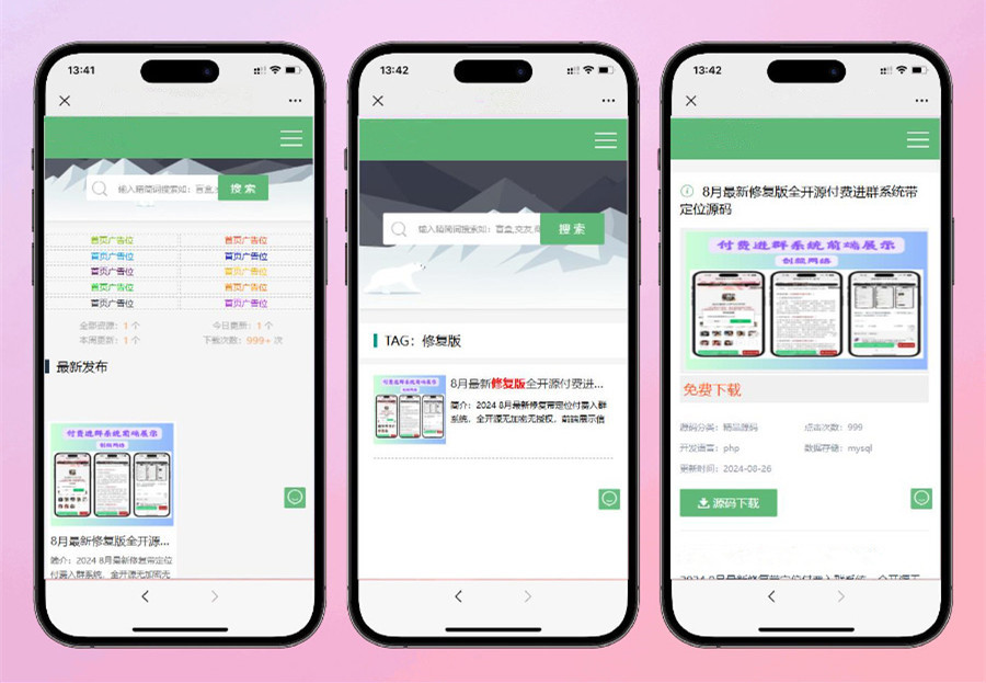 这是一套虚拟资源下载源码,也是大家再熟悉不过的了,可以用来搭建一个资源站点,提供资源的免费或付费下载。源码界面设计简洁清爽,功能完善操作丝滑,手机端完全自适应,已发现的问题均已修复。测试环境:php7.0+mysql5.6,