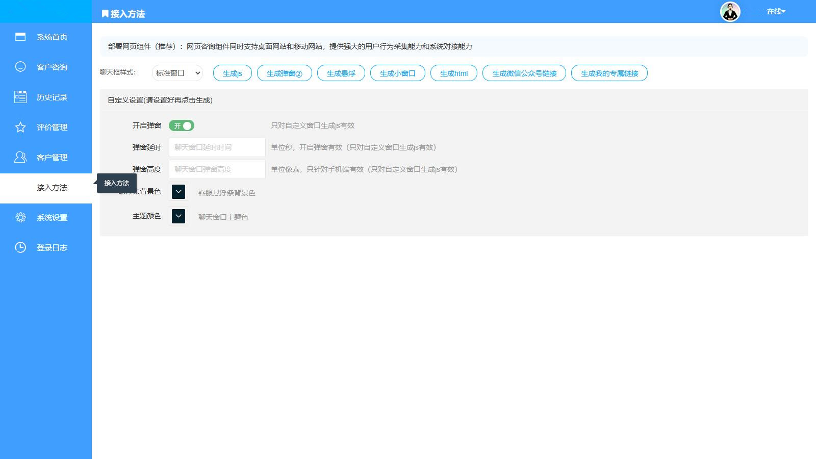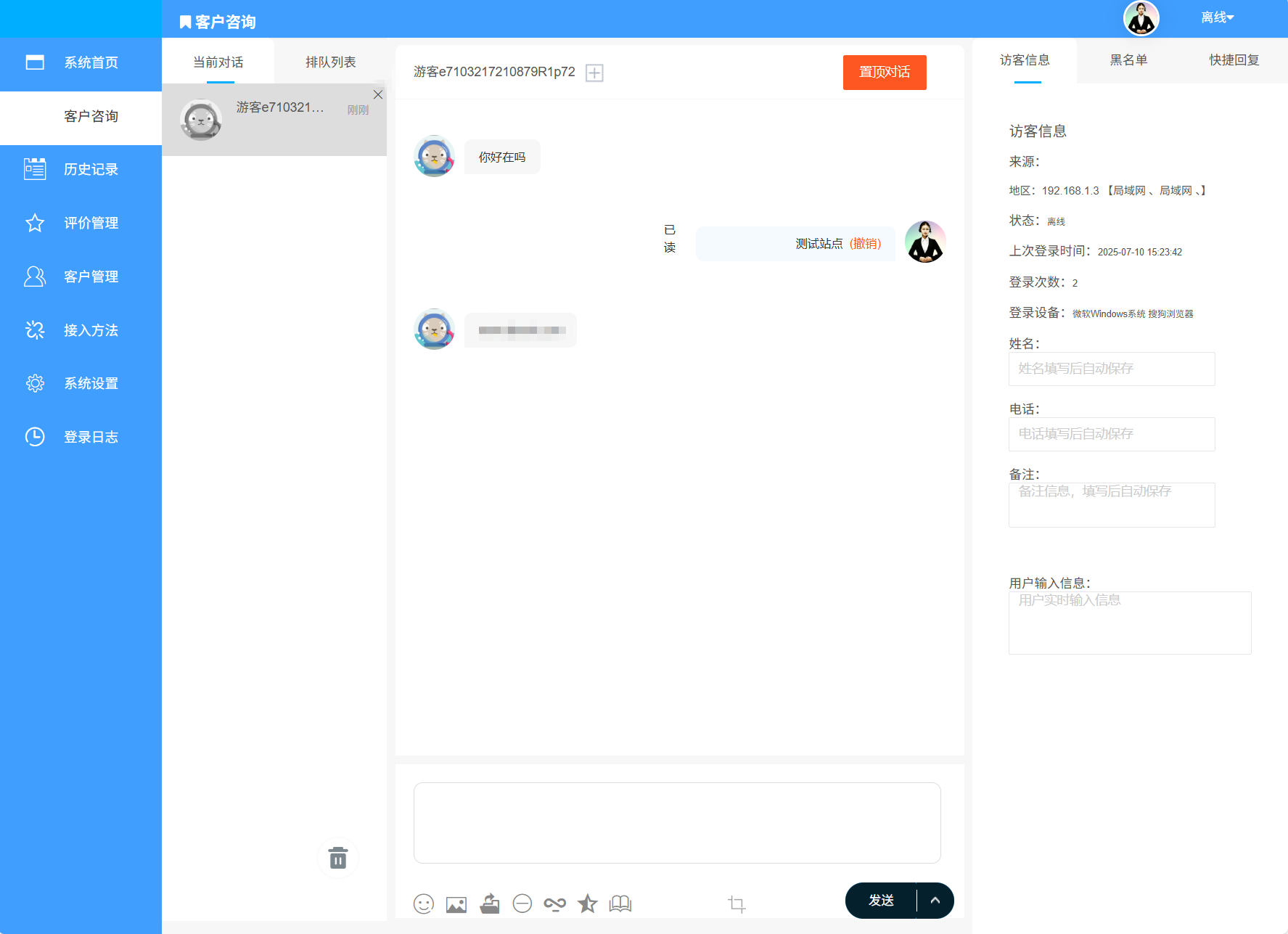 这是一套多商户的在线客服源码,基于ThinkPHP5.0框架,完全开源支持二开,该有的客服功能都是有的,支持多种快速接入方法,这里就不再过多描述了。