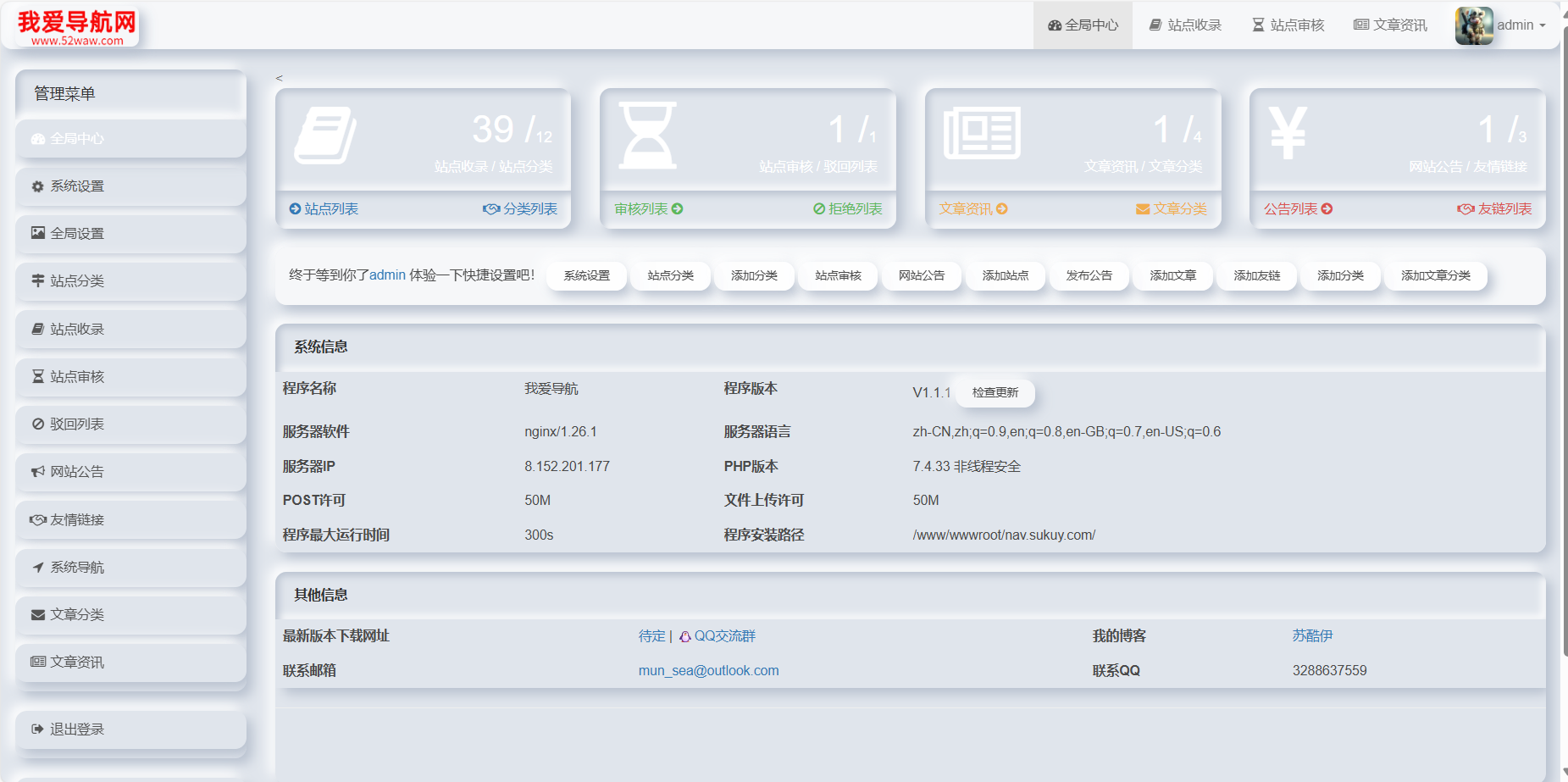 这是一套全开源的网址导航源码,基于SiteHub二次开发,拥有独立前台和拟态风格的后台管理中心,支持前台自主提交收录、自动获取TDK与网站Icon与后端审核管理,涵盖网站收录和文章发布等。测试环境:Nginx/Apache,PHP5.4+(建议7.4),MySQL5.6+,直接访问域名安装。