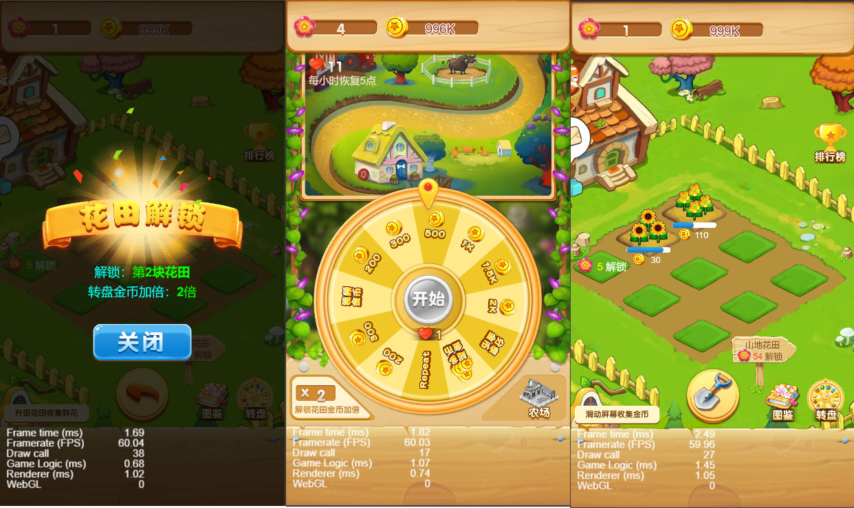 这是一套花园种菜类的休闲小游戏源码,基于cocos开发,需要通过Cocos引擎自行编译,支持抖音小程序和微信小程序。游戏以卡通风格花园为场景,核心玩法包含金色转盘抽奖系统,点击开始按钮触发奖励或任务,界面左侧显示“飞鱼解谜”任务提示,右侧布局涵盖农田、植物及小屋等元素,辅以小动物装饰,营造温馨趣味氛围。