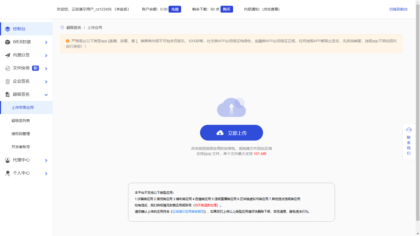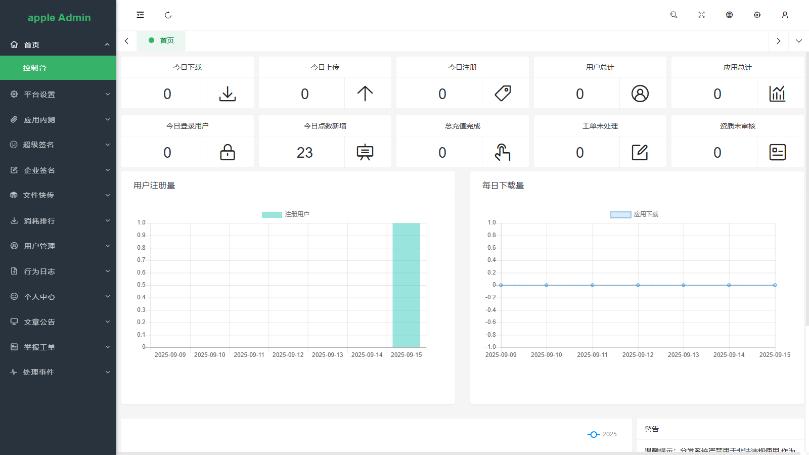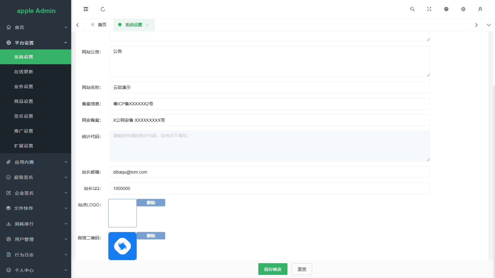这是一套APP分发签名源码,支持安卓和苹果及EXE程序分发,支持安卓和ios合并分发(签名支持),支持智能提取APP应用信息,自动生成IOS应用PLIST,支持企业签名在线一键提交,签名端只需要在本地完成即可,支持中文包、下载安装码、秒签下载等,测试环境:宝塔+Linux+PHP7.1+mysql5.6+SSL证书+伪静态,直接访问域名安装。源码内有文本说明(源码介绍.txt)