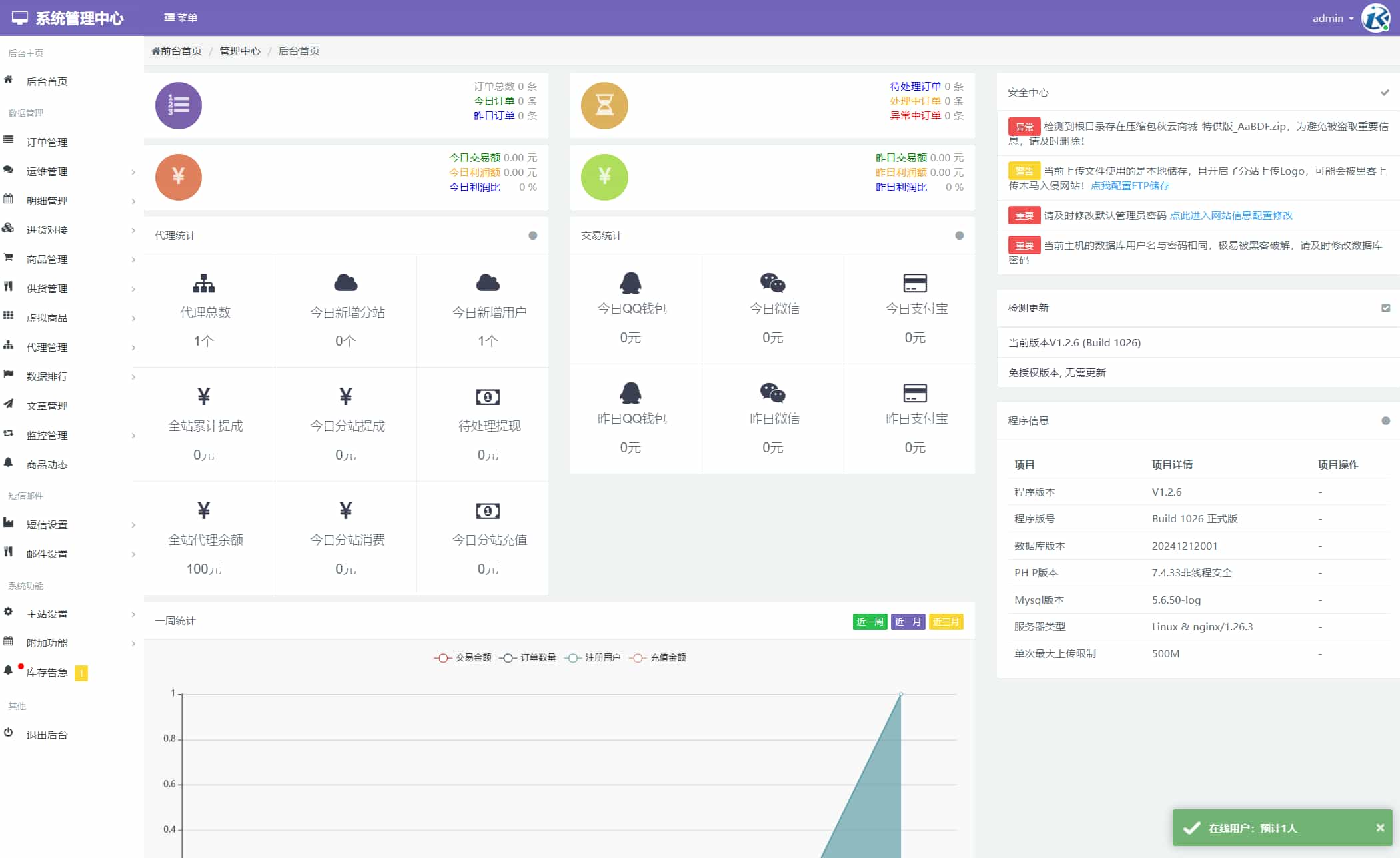 附带赠送一套相同源码的升级版本(彩虹云商城源码),版本是V7.2,全开源无加密,全解版无后门,测试环境:Nginx+PHP7.4+MySQL5.7,直接访问域名安装,账号admin,密码123456,大小40.0M,解压密码在文件名称里。