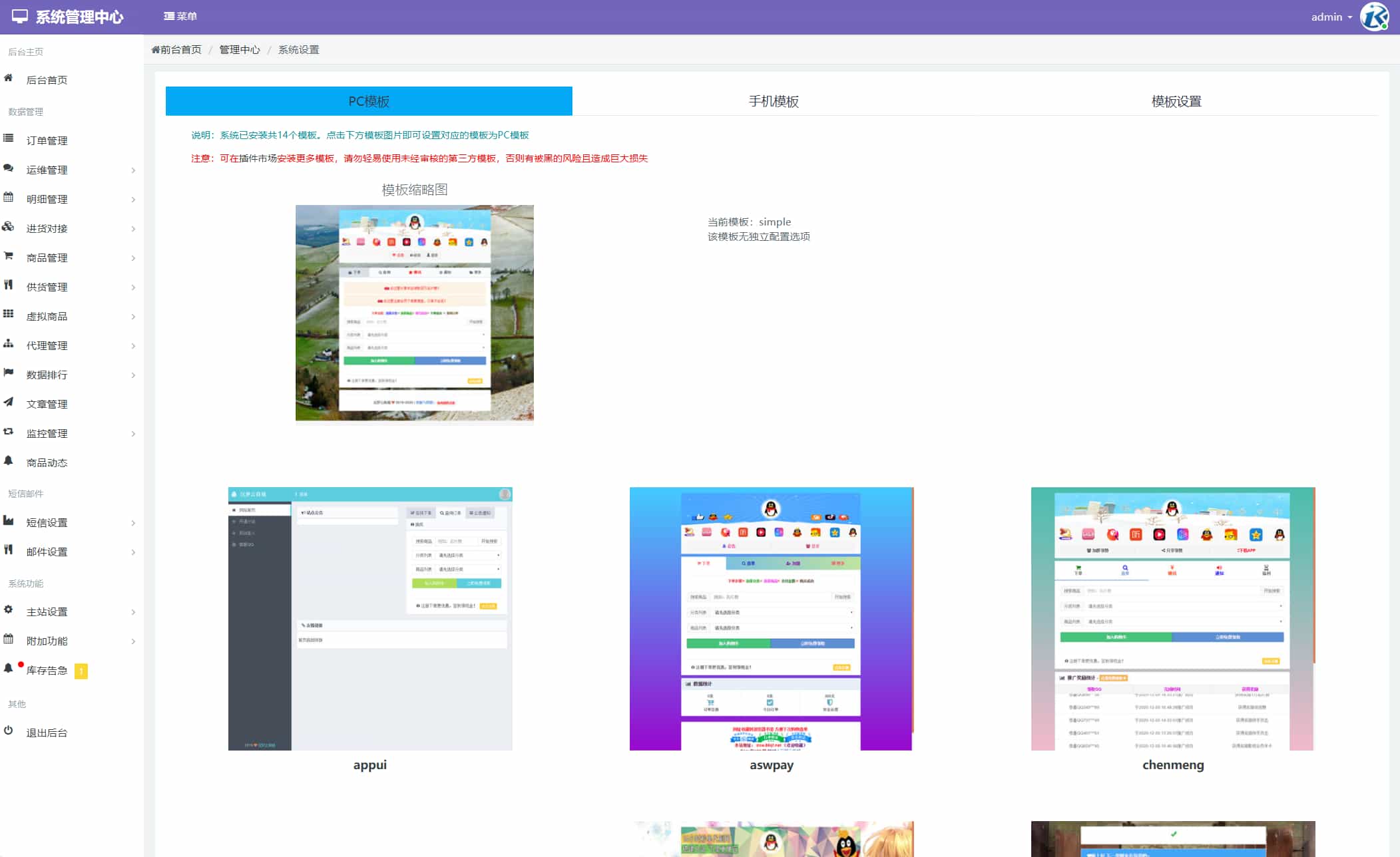 这是一套专业版的彩虹云商城源码,也就是彩虹自助下单系统,大家已经非常熟悉了,该有的功能全部都有(超多功能),全开源免授权+二开美化Pro版,堪称完美可直接运营。测试环境:Nginx+PHP7.4+MySQL,直接访问域名安装,源码内有简单的文本说明(源码介绍.txt)。全局日志目录\includes\logs\,其下都是TXT文本文件,由于体积太大(326M),已被全部清理删除;SQL日志目录\includes\core\sqlLog\,其下都是TXT文本文件,由于数量太多(共有3908个日志文件),已被全部清理删除。