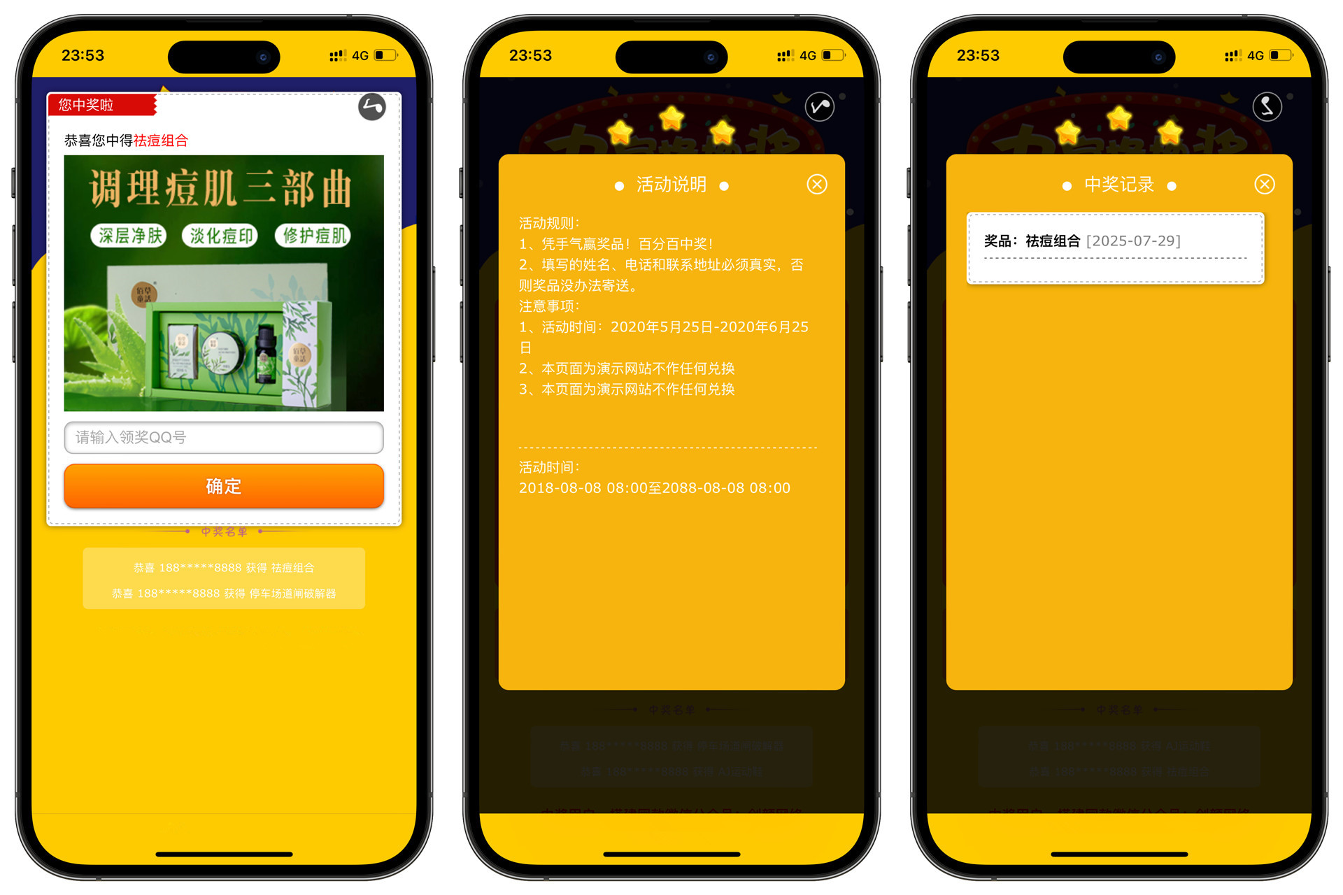 这是一套九宫格抽奖源码,后台可以自定义设置抽奖奖品,支持设置概率和数量,数量为0时不会抽中,可以生成抽奖码用于抽奖验证,没有抽奖码是无法抽奖的,抽奖码可以随机或者绑定指定抽奖奖品。后台支持自定义抽奖背景、音乐、虚假购买人数,抽奖码只支持单个添加,暂时无法批量操作。测试环境:MySQL5.6+PHP5.6。以前发布的不同版本http://www.txym.cc/6166.html