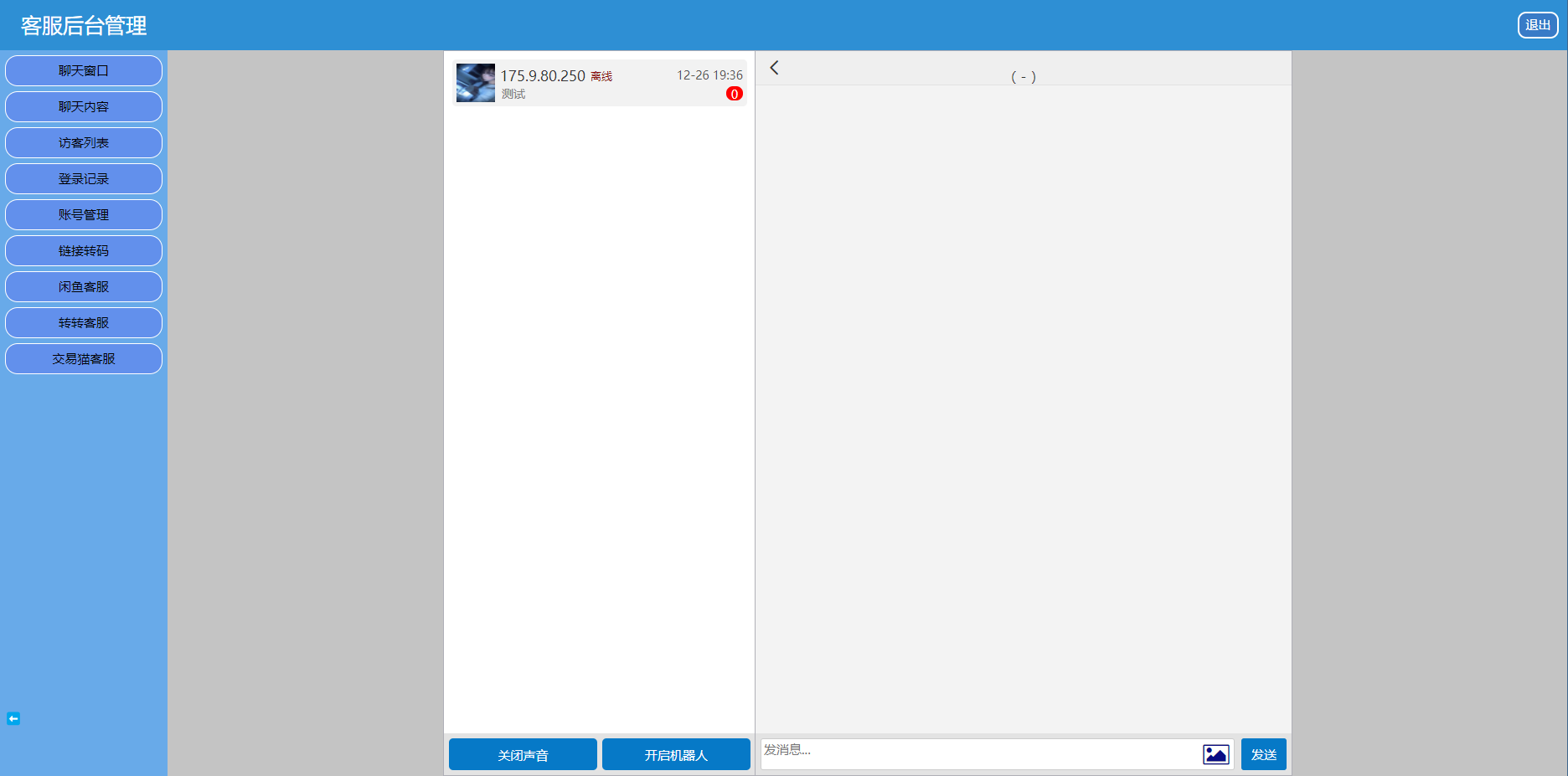 这是一套三合一客服源码,基于php+MySQL开发,专为闲鱼、交易猫、转转平台打造,前端仿闲鱼、交易猫、转转客服,无需对接任何第三方系统,支持机器人自动回复,Php版本必须是5.4或者5.6。